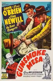 Gunsmoke Mesa is a 1944 American Western film directed by Harry L. Fraser and written by Elmer Clifton. The film stars Dave O'Brien, James Newill, Guy Wilkerson, Patti McCarty, Jack Ingram and Kermit Maynard. The film was released on September 1, 1944, by Producers Releasing Corporation.[1][2][3]