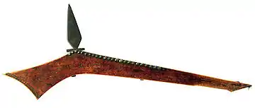 The gunstock club or gun stock war club is an indigenous weapon used by many Native American groupings, named for its similar appearance to the wooden stocks of muskets and rifles of the time.[1] Gunstock clubs were most predominantly used by Eastern Woodland, Central and Northern Plains tribes in the 18th and 19th centuries.[2]