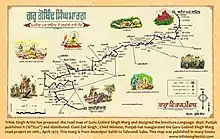 Guru Gobind Singh Marg was inaugurated on April 10, 1973, amidst great rejoicing and fanfare with efforts of then Chief Minister of Punjab, Giani Zail Singh.[4] The original map of this marg has been prepared by Trilok Singh Chitarkar and published by Languages Department, Punjab in year 1972. [5][6][7] It is now proposed to extend this road up to Nanded, Maharashtra.[8]