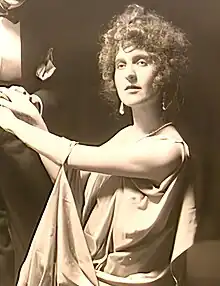 Holl was a performer at Schall und Rauch, a cabaret in Berlin that had been founded by Max Reinhardt in 1901. Nicknamed the silver-blonde elegant witch,[9] she sang and acted. She inspired multiple songs by Walter Mehring and Kurt Tucholsky,[3] including "The Blonde Lady Sings" and "Petronella", a parody of the Berlin trend for nudity on stage, and a dig at strip clubs. Tucholsky wrote of Holl, "Frankfurt has produced two great men: Goethe and Gussy Holl ... She can do anything: hate and love, stroke and beat, sing and speak there is no tone that is not part of her lyre."[10] and, "Unlike any other German artist, this rare and glorious woman is qualified and destined to be the great political singer. I won't even mention her tremendous art of parody and her ability to flit over the most daring things with a gracious leap we are only interested in the artist who has more to say to a hall full of politically thinking people than ten journalists could."[11] In addition to being the number one cabaret star in the Weimar Republic,[12] she was also a successful impersonator in New York.[13]