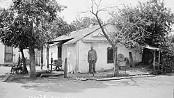 The Gustav Rohrich Sod House was a sod house located in Bellwood, Nebraska, United States. It was built in 1883 on 80 acres (32 ha) of land by Gustav Rohrich (1849–1938), an immigrant from Austria, for himself, his wife and three children. Its walls are made of sod laid in blocks, grass side down, with each block approximately 2 to 2.5 feet (0.76 m) long, 12 to 16 inches (410 mm) wide, and 3 to 4 inches (100 mm) deep.
