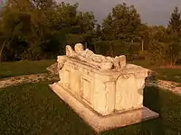 One of the Janissaries cut off his head and brought it to Ali Pasha.[6] Ten of Szondy's Hajdús survived and were granted safe passage back to Upper Hungary. Ali Pasha acknowledged Szondy's bravery, and ordered an ornate marble sarcophagus to be made for Szondy and for him to be buried with full military honours.