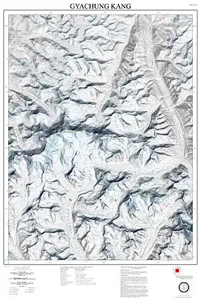 ![]() Gyachung Kang Location on China - Nepal border ![]() Gyachung Kang Gyachung Kang (Tibetan Plateau) ![]() Gyachung Kang Gyachung Kang (Nepal) | |