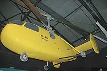 In 1946 the newly formed Gyrodyne Company acquired rights to the Bendix Model J and developed it into the GCA-2 (N74101). The GCA-2 was of all-metal construction, and had a coaxial twin rotor layout, with a five-seat cabin and a rounded fuselage with twin fins. Later on, the GCA-2 was designated GCA-2A Helidyne after being modified with twin 100 hp Continental auxiliary engines mounted externally on strutted outriggers to give additional forward speed, flying on November 30, 1949. A second GCA-2 airframe, the GCA-2C (civil registration N6594K), first flew on April 25, 1952, piloted by Jim Ryan; it could also be used as an ambulance helicopter capable of carrying three litters.[1][2][3]