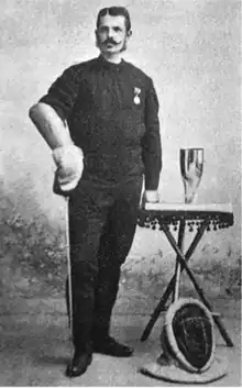 Iványi participated at the sabre event at the 1900 Summer Olympics, advancing from the first pool and the semifinals to the finals, where he finished fifth place.[5] According to some sources, he would have placed higher had it not been for the bias of French judges; following his result, the Hungarian and Austrian members of the jury[lower-alpha 1], Ferenc Krasznay and Luigi Barbasetti, resigned in protest.[3] He retired after the event and returned to his job as the head of the Terézváros branch of the United Budapest Capital Savings Bank; in later years he was promoted to director.[3] He died on 6 December 1920 in Budapest.[2] Iványi is regarded by many sources as the first great Hungarian fencer.[4]