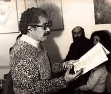 Borda Leaño was a member of several avantgarde artistic movements in Bolivia, such as the Second Gésta Bárbara in Oruro and Grupo Anteo in Sucre.[2] During the 1960s Borda Leaño was a founding member of the cultural movement Prisma, which gathered the Bolivian intellectual elite. Its leading members, among them Pedro Shimose, Julio de La Vega and Monsignor Juan Quiróz, were closely connected to the newspaper El Diario and were key in extending Bolivian literary influence across its national borders.[3] Borda became in the late 1960s gradually more left-wing and turned ideologically towards a nationalist marxist vision that sought to galvanize the mining proletariat with the indigenous pesantry. His literary style reflected his ideals, as he mixed indigenous – particularly Quechua – cultural and linguistic symbolism with an often brutal social realism. His poems are epics of the disposessed, and deals with the lives of miners, street vendors, drunks and prostitutes. Borda Leaño himself explained: "Before writing an exquisite poem on a trivial subject, it is preferable to write, even imperfectly, a poetry that deals with man and his dramatic and painful circumstances."[4]
