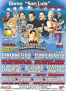On October 5, 2006, founder of the Mexican professional wrestling, company AAA Antonio Peña died from a heart attack.[4][5] The following year, on October 7, 2007, Peña's brother-in-law Jorge Roldan who had succeeded Peña as head of AAA held a show in honor of Peña's memory, the first ever Antonio Peña Memorial Show (Homenaje a Antonio Peña in Spanish).[6] AAA made the tribute to Peña into a major annual event that would normally take place in October of each year, renaming the show series Héroes Inmortales (Spanish for "Immortal Heroes"), retroactively rebranding the 2007 and 2008 event as Héroes Inmortales I and Héroes Inmortales II.[7] As part of their annual tradition AAA holds a Copa Antonio Peña ("Antonio Peña Cup") tournament with various wrestlers from AAA or other promotions competing for the trophy. The tournament is normally either a gauntlet match or a multi-man torneo cibernetico elimination match. Outside of the actual Copa Antonio Peña trophy the winner is not guaranteed any other "prizes" as a result of winning, although several Copa Antonio Peña winners did go on to challenge for the AAA Mega Championship. The 2012 show was the sixth show in the Héroes Inmortales series of shows.