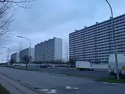 Høje Gladsaxe is a large housing project, approximately 10 km northwest of central Copenhagen, Denmark. The project contains five 15-storey blocks, two 8-storey blocks and some smaller blocks. It contains around 2,500 apartments. The project was finished in 1966.