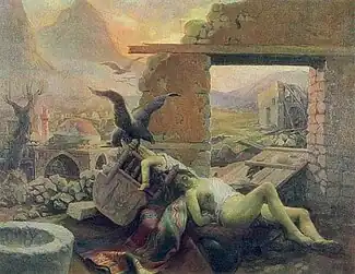 In 1922, he and his wife went to a teacher's conference in Bursa, where they met President Atatürk. They were invited to spend four months with the President in Ankara, where he produced several portraits, including one of Marshall Fevzi Çakmak, and began one of his best-known paintings, "Karagün" (Black Day).[2] In 1924, he was appointed a Professor at the "Sanayi-i Nefise Mektebi" (School of Fine Arts, now part of the Mimar Sinan Fine Arts University), a position he retained until his sudden death at the early age of forty-one, apparently from a heart attack.[3]