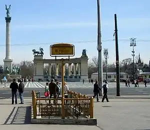 Station entrance with Heroes' Square behind