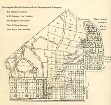 Whitley became a major shareholder, with Harrison Gray Otis and George W. Hoover, of the Los Angeles Pacific Boulevard and Development Company.[11][12] He orchestrated the opening of the Ocean View Tract and construction of a bank located on the corners of Hollywood Boulevard and Highland.