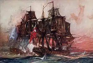 This battle was the first between British and French naval forces during the American Revolutionary War[7] and took place around three weeks before the formal declaration of war by France.[7]