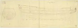 | Class and type | 44-gun fifth-rate ship of the line |