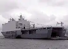 HNLMS Johan de Witt (Dutch: Zr.Ms. Johan de Witt) is the second Rotterdam-class landing platform dock of the Royal Netherlands Navy. It is an improved design of Rotterdam, which was designed in conjunction between the Netherlands and Spain.[2] The ship, displacing 16,800 tons, was launched on 13 May 2006.[3] The motto of the ship is Ago Quod Ago, translated as I do what I do.[3]