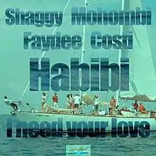 "Habibi (I Need Your Love)" is a song by Jamaican rapper Shaggy with ensemble of Congolese-Swedish singer Mohombi, Lebanese-Australian singer Faydee and Romanian singer Costi. In a later specially released version targeting English language markets, the song is retitled "I Need Your Love" crediting Shaggy as main performer featuring Mohombi, Faydee and Costi. The song was written by the Australian recording artist of Lebanese origin Faydee and Romanian recording artist Costi. The song is in Arabic, English and Spanish. "Habibi" means "my love" in Arabic language. Additionally a number of mixed language versions were released including Bulgarian, French and Russian.