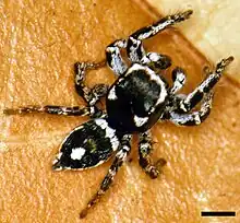 - Maddison, W. P.; Evans, S. C.; Hamilton, C. A.; Bond, J. E.; et al. (2017). "A genome-wide phylogeny of jumping spiders (Araneae, Salticidae), using anchored hybrid enrichment". ZooKeys (695): 89–101. doi:10.3897/zookeys.695.13852. PMC 5673835. PMID 29134008.