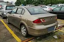 The Hafei Saibao V is a 4-door compact sedan produced by the Chinese car manufacturer Hafei. The Saibao V compact sedan is slightly larger and positioned above the Saibao III compact sedan.[2] It was designed by Pininfarina.