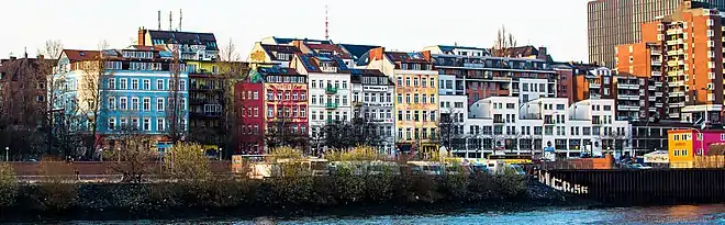 The Hafenstraße occupation began in 1981, when twelve buildings were squatted.[2] They were to become extremely important symbols for the German squatters movement and for urban activists more generally.[3][4] Students who were already living there joined with autonomists to save the buildings on Hafenstraße and Bernhard-Nocht-Straße from being demolished. The apartment blocks had been constructed in 1900 and were in serious need of renovation. It was not noticed that the buildings had been squatted until 1982, when the owner SAGA immediately reported the trespass and the police evicted the squatters. The buildings were quickly reoccupied.[4] The squatters then signed a three-year temporary use contract and argued they should be permitted to restore the buildings themselves. This led to conflict with the city council, which repeatedly attempted to evict them.[4][5]