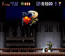 Hagane: The Final Conflict[lower-alpha 1] is a 1994 action-platform video game developed by CAProduction and published by Red Entertainment and Hudson for the Super Nintendo Entertainment System. The player takes on the role of a ninja cyborg named Hagane on his path to take revenge on an opposing ninja faction. The game combines traditional Japanese ninja and samurai aesthetics with a futuristic setting. The player has a wide variety of weapons, moves, and attacks at their disposal to defeat enemies and progress through the game. Hagane released to positive reception, and was compared favorably to classic side-scrolling action games. Reviewers praised the controls, art design, and challenge but criticized the quality of the graphics and sound.