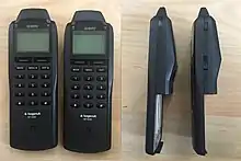 Hagenuk MT-2000 was a mobile phone device launched in 1994.[1] The device was designed and manufactured by Hagenuk's development centre in Støvring, Denmark. The phone was, together with its predecessor Hagenuk MT-900 from 1992,[2] some of the first mobile phones in the industry using Soft keys. Finally, the MT-2000 was the first in the industry to have a built-in antenna, instead of the traditional extension antennas. It was believed until recently that it was the first smartphone to have installed a video game but then it turned out that it was the third one – the first two were Siemens S1 (hidden Tetris – called "Klotz" here[3]) and the IBM Simon (Scramble) – both built in 1993 and released in 1994. There were two variants of the phone produced – with and without dedicated physical buttons for volume up and down and power on/off.