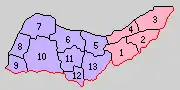 Colored areas are in this district.