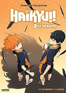 The second season of Haikyu!! anime television series is produced by Production I.G. and directed by Susumu Mitsunaka, with Taku Kishimoto handling series composition, Takahiro Kishida providing character designs, and Yuki Hayashi and Asami Tachibana composed the music.[1] The season was announced to be in production on December 19, 2014.[2] It adapted the "Tokyo Expedition" (chapters 72–96) and the first half of "Spring High Preliminary" (chapters 97–149) story arcs from the original manga series of the same name written by Haruichi Furudate. The season aired from October 4, 2015, to March 27, 2016.[3]