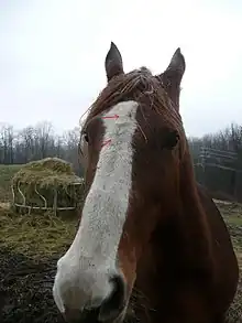 There are many (mostly apocryphal) theories concerning horse behavior and their hair whorls.[5]