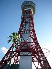 Hakata Port Tower is a 103 metre high lattice tower with an observation deck in a height of 73.5 metres in Hakata-ku, Fukuoka, Japan. Hakata Port Tower was built in 1964.