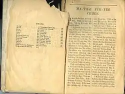 - ↑ 《救主嘅耶穌新約聖經》 Kiu-chú Yâsu kaì Sin-yok Shìn-kin。 T´ıt tso`o Khak-ka Ph`ak-v`a, San-thˆeu Li-pa`ı thoˆong i`ın-fat. New Testament, Hak-ka Dialect, Printed for the British and Foreign Bible Society at the English Presbyterian Mission Press.