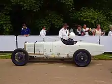 When first raced at Brooklands, at the 1925 BARC meeting in August, the car appeared with a two-litre Roots-type supercharger mounted on the front of the crankshaft.