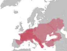 Halictus sexcinctus are commonly found across Europe, and can be found as far north as southern Sweden[5] and as far east as Turkey and Iraq. They are solitary in the northern part of the range and social in their southern range.[4] They live in very large aggregations in central Europe, despite being solitary in this part of their range.[4] H. sexcinctus prefers to nest in sandy or loamy soil.[5] They use their mandibles to dig nests in the ground or even on vertical substrates if it is made of earth. Their nests consist of a main tunnel dug diagonally into the ground, with several short side chambers off of it leading to brood cells. One egg is laid per cell on top of a nectar-pollen mixture.[7] Females primarily collect pollen from plants of the family Asteraceae, and tend to forage in plant species with wide-open flowers.[5] Examples of plants they forage pollen and nectar from are asters, daisies, and sunflowers.[7]