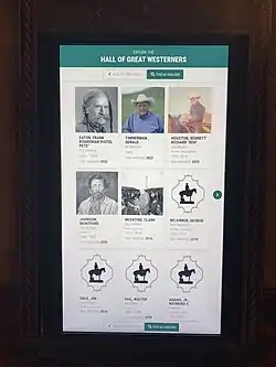 The Hall of Great Westerners was established by the National Cowboy & Western Heritage Museum in 1958. Located in Oklahoma City, Oklahoma, U.S., the Hall was created to celebrate the contributions of more than 200 men and women of the American West.[1] Inductees include explorers, Native American leaders, writers, poets, politicians, statesmen and others.[2]