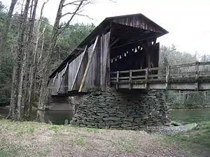 Halls Mills Bridge is a wooden covered bridge over the Neversink River. It is in the town of Neversink, in Sullivan County, New York, on Hunter Road. Construction began in 1906 and was completed in 1912, built by David Benton and James Knight. It is a single span of town lattice truss design. The bridge was retired from vehicle use in 1963, but is still accessible to pedestrians only.