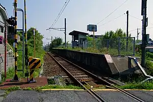 The station consists of one ground level unnumbered side platform serving a single bi-directional track. There is no station building, but only a small shelter on the platform, and the station is unattended.
