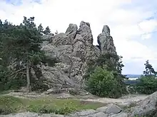 The Hamburger Wappen ("Hamburg coat of arms") is a highly unusual rock feature on the Teufelsmauer ("Devil's Wall") rock formation not far from Timmenrode in the Harz Mountains in central Germany.
