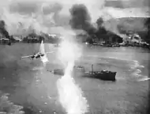 Japanese ship under attack during the air raid at Rabaul Harbor November 1943.