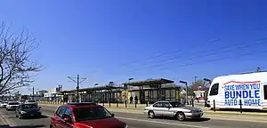 Hamline Avenue station is a light rail station on the Metro Green Line in Saint Paul, Minnesota. It is located along University Avenue on both sides of the intersection with Hamline Avenue. The station has split side platforms, with the westbound platform on the north side of the tracks west of Hamline and the eastbound platform on the south side of the tracks east of the intersection.[1]