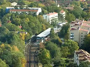 Hammarbyhöjden metro station is on the green line of the Stockholm metro, located in Hammarbyhöjden, Söderort. The station was inaugurated on 17 April 1958 as the east terminus of a one-station extension from Skärmarbrink. On 18 November 1958 an extension to Bagarmossen was opened.[2] The distance to Slussen is 3.8 km (2.4 mi).