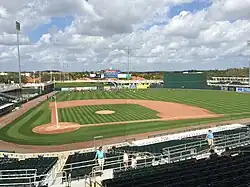 The spring training home of the Minnesota Twins saw its seating capacity increased from 7,500 to 9,300 in the spring of 2015.[4] Class A Advanced affiliate, the Fort Myers Mighty Mussels (then the Fort Myers Miracle), of the Florida State League finished out their 2014 season and FSL championship at JetBlue Park (Spring home of the Boston Red Sox, also in Fort Myers) in order to get the renovations done in time for catchers & pitchers to report in 2015. The renovations will also increase the amount of walkable area, provide more shaded areas for sunny games[5] and an expanded gift shop, among other amenities for fans and players.[6]