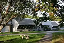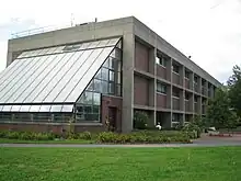 Opened on April 26, 2017, the R.W. Kern Center is the 17th Living Building in the world certified under the advanced green-building standard, the Living Building Challenge. The building cost $10.4 million made possible by private donations. It operates net-zero energy, water, and waste. The building is powered by solar panels on its roof, supplies its own drinking water by harvesting rainwater from its roof, manages its wastewater on site, and contains composting toilets. The Kern Center was built using materials from local sources without the use of any toxic "red list" materials; even materials such as duct tape were chosen carefully to comply with strict environmental standards.[61] Currently, the Kern Center houses Admissions and financial aid offices as well as classrooms, student lounges, and a coffee shop. President Jonathan Lash stated that "[w]ith this building we have sought to reflect our values, in the inclusive design process, the design and materials, our construction practices, and our reporting about the building... [w]hy are buildings constructed any other way? In every way, the Kern Center was built to learn and teach."[62][63]