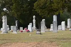 Hampton Cemetery is a historic cemetery in downtown Hampton, Arkansas. The 0.5-acre (0.20 ha) cemetery is located near the center of town, not far from the Calhoun County Courthouse, and immediately adjacent to the Hampton Church of Christ. The cemetery is said to have been used as a burying ground since the first days of settlement in the area (which began in 1848), although the first marked grave is dated 1878. The town decided in 1920 to stop allowing burials other than those already reserved, and the last burial took place in the cemetery in 1969. There are estimated to be 139 burials in the cemetery, although only 103 are marked. Most of the marked graves are dated between 1890 and 1920.[2]