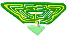 Commissioned by King William III, the maze, which is about one-third of an acre, is planted in a trapezoid shape and was designed by George London and Henry Wise.[2] It was located in the "wilderness" part of the gardens of the palace, of which it is now the only surviving part.[3][4] Planted between 1689 and 1695, the maze is not particularly difficult,[3] taking about 20 minutes for a person to make their way to the middle.[2] It was originally planted in hornbeam, later replaced by yew.[2]