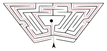 Psychologist Edmund Sanford took inspiration from the Hampton Court Maze in his idea to create mazes for laboratory rats to study learning.[5][6] The maze is referenced in some works of literature, including humorist Jerome K. Jerome's Three Men in a Boat (1889) and Carol Shields' Larry's Party (1997),[3] and is referenced in the Only Fools and Horses episode "Three Men, a Woman and a Baby".[7] It also serves as the inspiration for the maze at Mayer's Nest in Ian Martin's "Nightmare Nest" broadcast for the CBS Radio Mystery Theater in 1975.