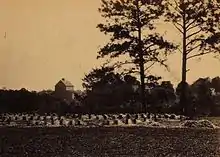 By late April 1865, a white picket fence on which was written "The Martyrs of the Race Course" had been erected.[6] On May 1, 1865, thousands of people, mainly newly freed blacks, processed to the site, and members of the 54th Massachusetts Volunteer Infantry marched around the site. The graves were decorated, speeches were offered, and celebrants enjoyed picnics in the area.[7] This has been cited as the first Memorial Day celebration. By 1871, the cemetery was suffering neglect, and the soldiers were reinterred at the Beaufort[5] and Florence National Cemeteries.