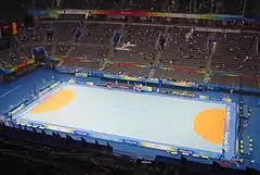 The Beijing National Indoor Stadium prepared for the final handball matches.