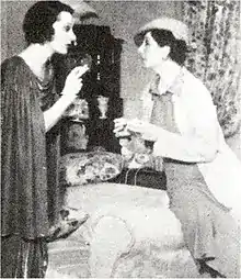 The actress most closely associated with Coward was Gertrude Lawrence, his oldest friend, with whom he had first acted as a child in Hannele in 1913.[6] They starred together in his revue London Calling! (1923) and his comedy Private Lives (1930–31),[7] and he wrote the Tonight at 8.30 plays "as acting, singing and dancing vehicles for Gertrude Lawrence and myself".[8] Coward directed the plays as well as acting in them. They were performed in various combinations of three.[n 2]
