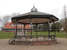 The park was developed under the supervision of the landscape architect Thomas Hayton Mawson of Windermere, who created Burslem Park around the same time.[3] Mawson's design makes use of terracotta to highlight features such as the axis between one of two footbridges across the canal and the pavilion. The pavilion, which is arguably the park's main focal point, was completed in 1896, and was designed by Mawson's junior partner Dan Gibson.[1] The bandstand between the pavilion and the canal was the gift of Mr George Howson, a local pottery owner.
