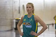 Zavecz earned her first call up to the Australia women's national basketball team in 2010[16] and participated in a tour of China, USA and Hungary in mid-2010.[17] In late July 2011, she played in a three-game test series against China played in Queensland.[18] In the first game against China, Australia won 73–67 with Zavec contributing in key moments in the fourth quarter.[19] She played in the 2012 Summer Olympic qualifying game against the New Zealand women's national basketball team.[7] She was named to the 2012 Australia women's national basketball team.[20]