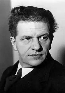 On 1 November 1932, Johst joined the Nazi Party (membership number 1,352,376).[2] In 1933, Johst signed the Gelöbnis treuester Gefolgschaft, a declaration of loyalty to Hitler by pro-Nazi writers.[3] Johst was named First Chairman of the Deutsche Akademie für Dichtung (German Academy for Poetry) on 9 June 1933, and on 15 January 1934, Prussian Minister President Hermann Göring appointed him a member of the Prussian State Council.[4] Succeeding Hans-Friedrich Blunck in October 1935, Johst became the President of the Reichsschrifttumskammer (Reich Writers Chamber) a powerful organisation for German writers. In the same year, the last prominent Jewish writers, e.g. Martin Buber, were expelled from the Reichsschrifttumskammer. By this time these organisations restricted membership to writers whose work was either explicitly pro-Nazi or at least approved of by the Nazis as non-degenerate. Johst achieved other positions of importance within the Nazi state, and he was named in the Gottbegnadeten list of September 1944 as one of the Reich's most important artists. He joined the Allgemeine-SS on 9 November 1935 (SS member number 274,576) and rose to the rank of SS-Gruppenführer on 30 January 1942.[2] During the war he held various positions within the SS, including on the personal staff of Reichsführer-SS Heinrich Himmler, which Thomas Mann stated was the reason that several charges of pedophilia and abuse of children were dropped against Johst in the winter of 1944.[3]