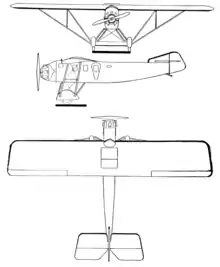 It was powered by a 370 kW (500 hp), eighteen cylinder Salmson 18 Cm. This was one of the last, and the most powerful, of Salmson's water-cooled radial engines, with two in-line rows of nine cylinders. It was enclosed in a rounded cowling with caps over the cylinder-heads. Fuel was held in the wing centre-section and two Lamblin radiators were mounted on the undercarriage legs. Behind the engine the fuselage was rectangular in section, defined by light-metal, U-section longerons and cross-frames. The open cockpit was at the wing leading edge, with small side-windows for a better view downwards. Behind the cockpit the cabin seated six passengers, each with their own window. Entry was via a port-side door and there was a disposable emergency ceiling hatch to allow passengers to escape by parachute.[1]